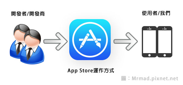 App Store與Cydia其實都是同樣模式再經營,「App Store」可視它為Apple的主要的賣場,開發人員必須遵守Apple規則撰寫APP,需通過Apple審核機制審核才會上架,才能提供讓使用者在App Store購買或是下載,如果是無法通過Apple審核的APP,別灰心在Cydia上一定能夠將此APP功能讓你發揚光大。